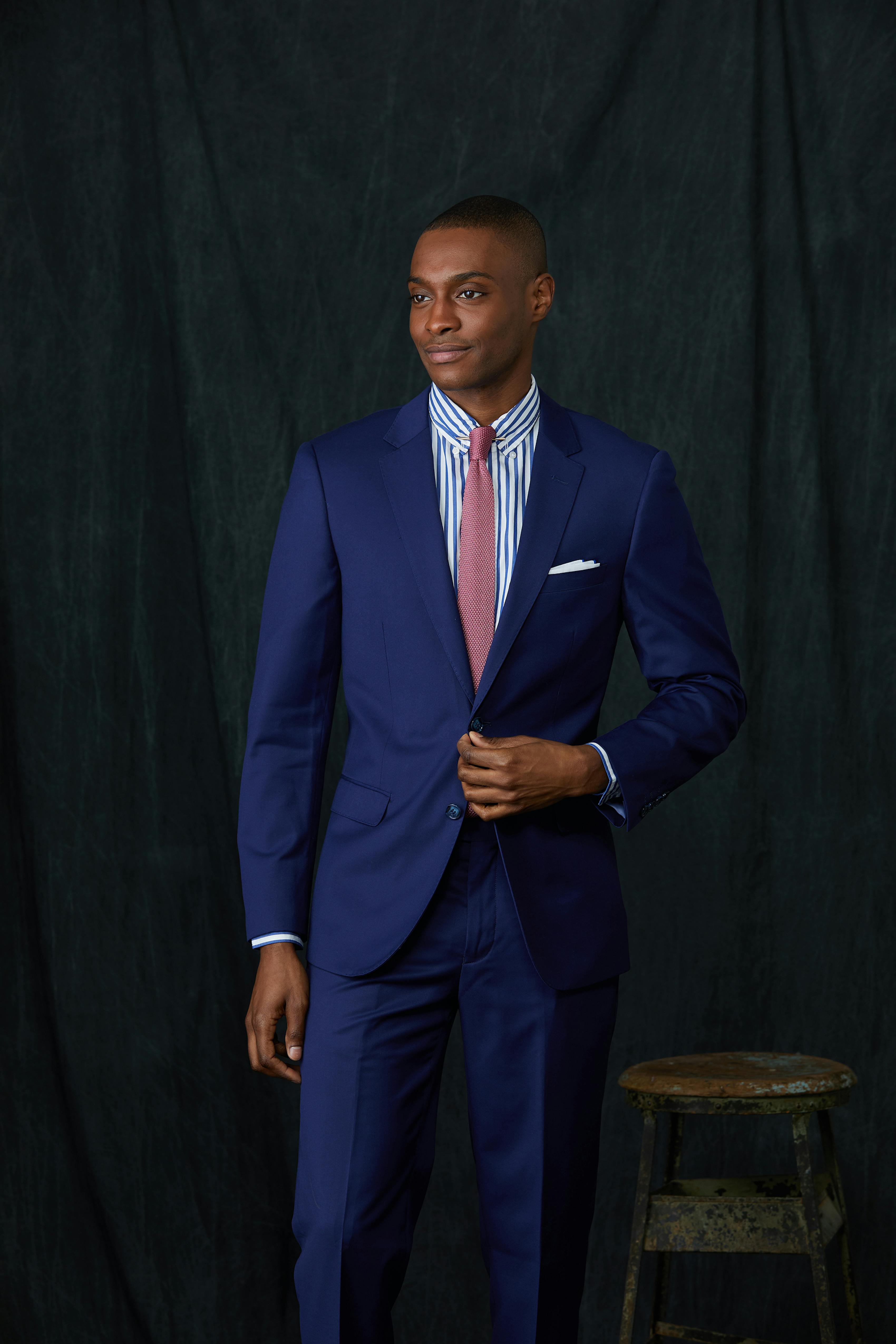 Try a brighter blue than the navy you might typically go with, or put on something even more out-of-the-box with trending and holiday appropriate shades like hunter green and burgundy.