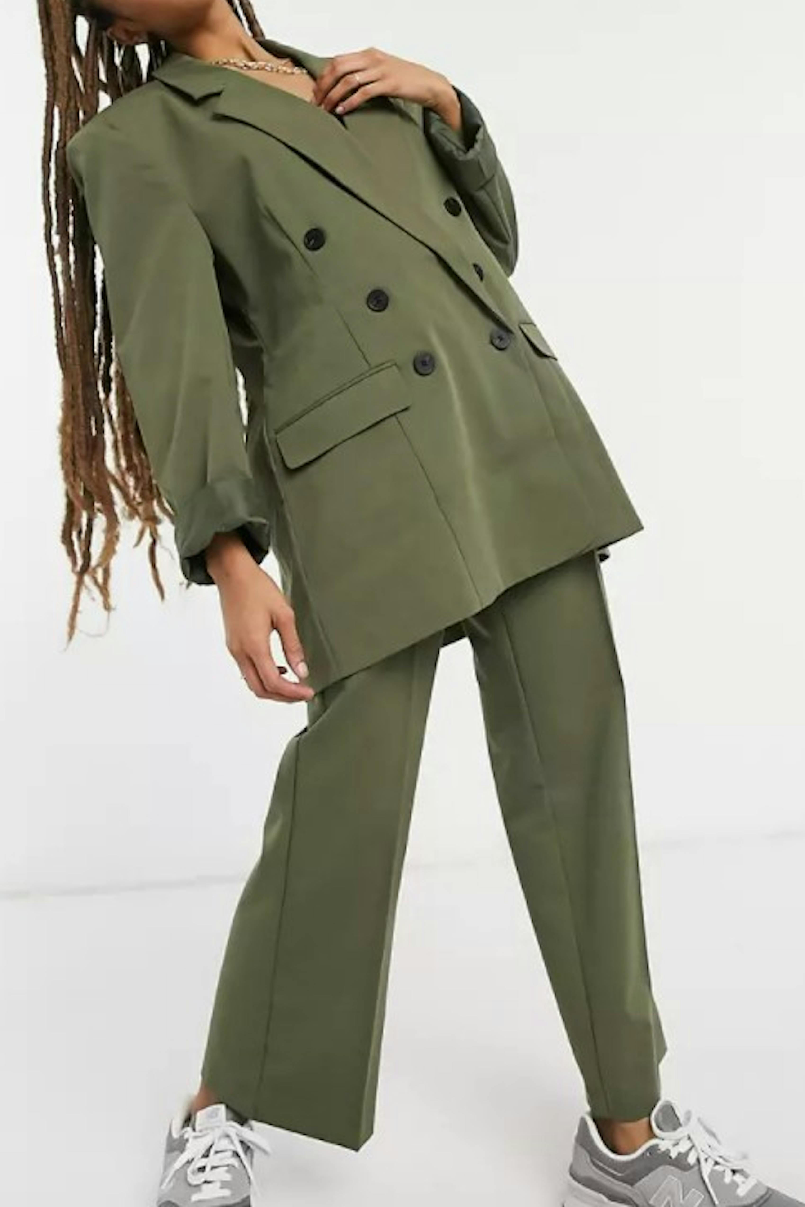 The oversized suit that's been on-trend for the past couple of years, makes a stylish casual outfit.