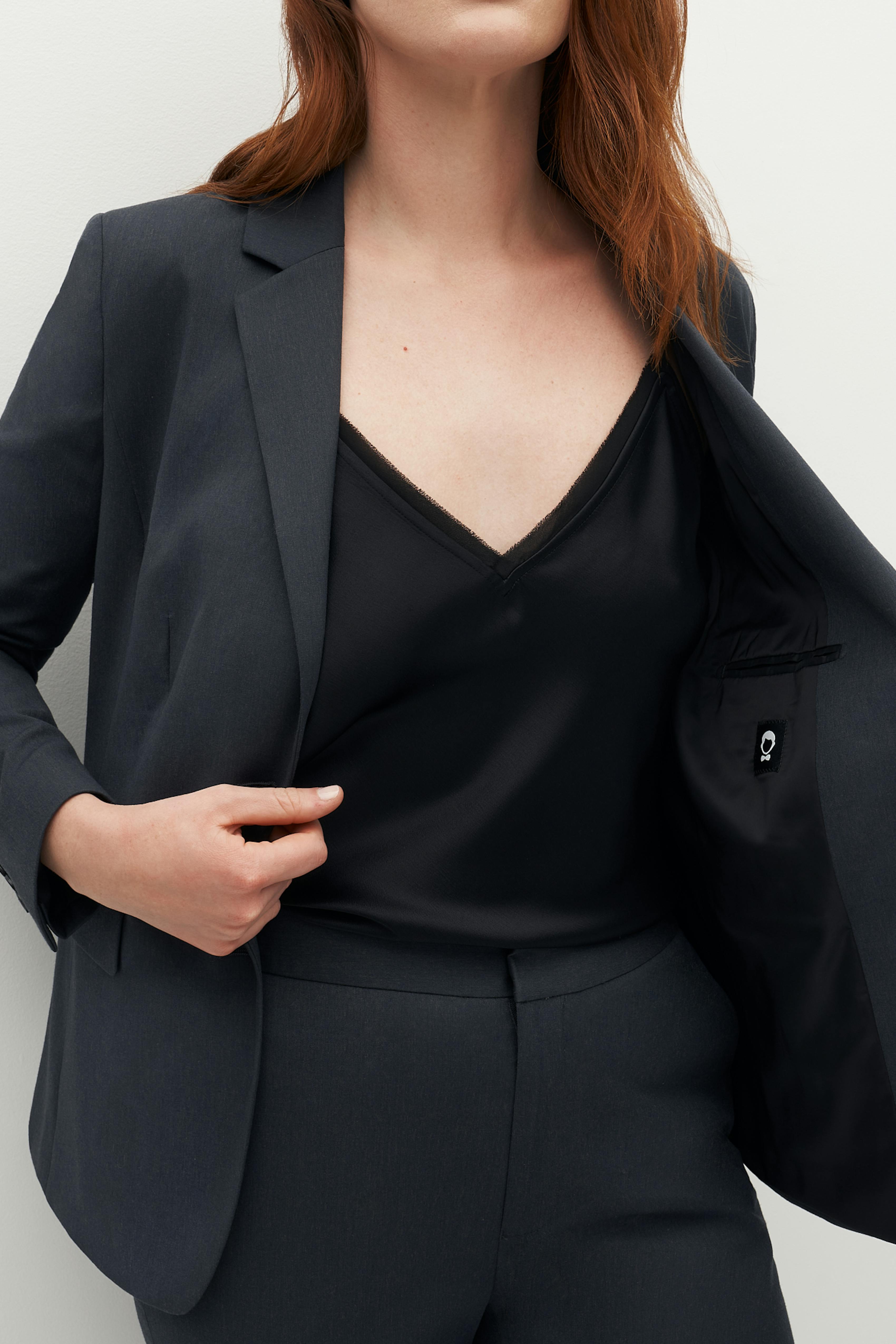 No, we’re not talking about the neon tanks you can buy on South Beach. Think a camisole for women or a men’s solid tank in white, black, or navy. We recommend this look for occasions where you don’t intend to remove your jacket. This lightweight vibe is perfect for spring through fall and pairs well with other accessories like necklaces and belts. For more women’s specific recommendations, check out our article on what to wear under a women’s tuxedo or pant suit.